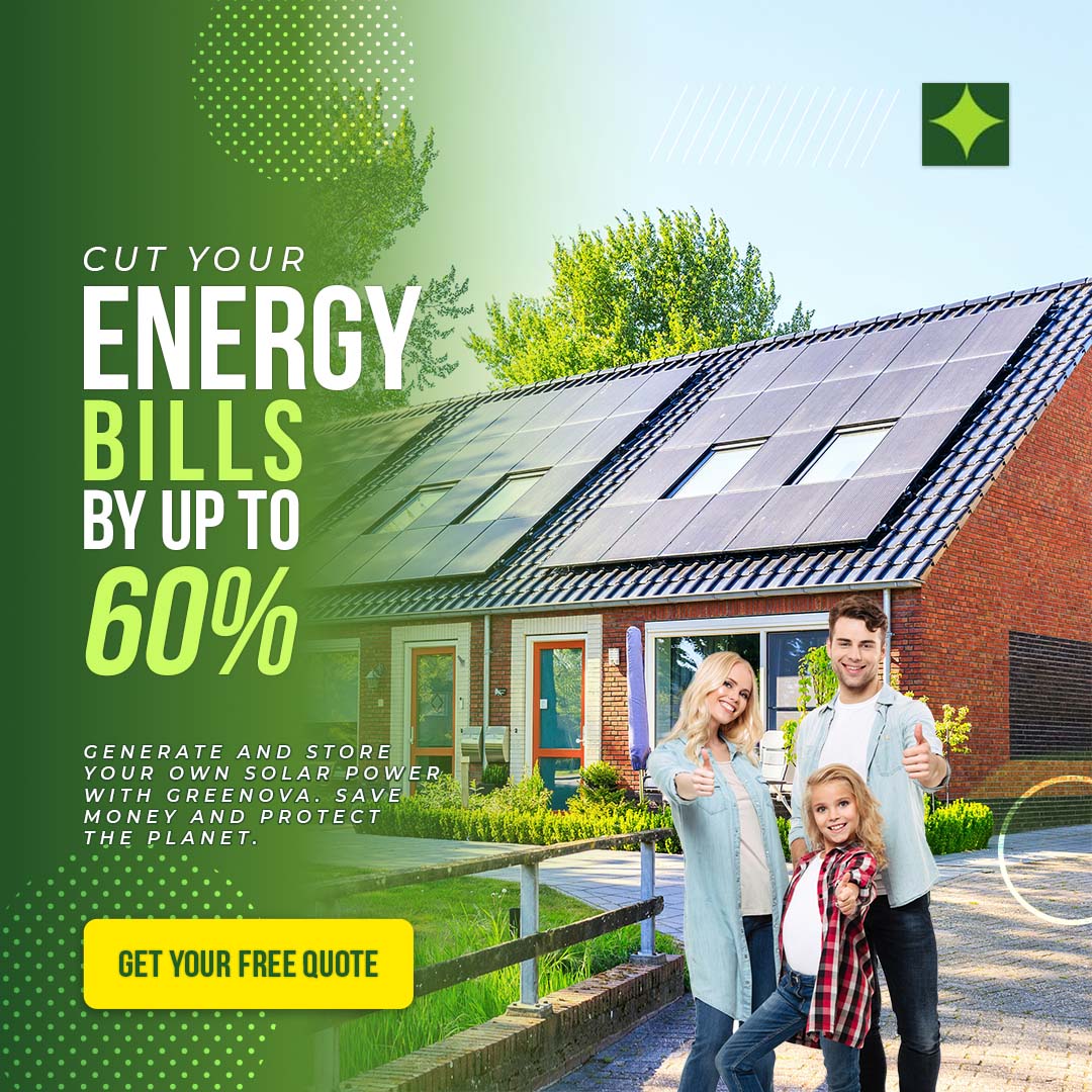 Création d’une publicité statique et d’un carrousel 3 slides pour Meta, visant les propriétaires en Belgique et aux Pays-Bas. Objectif : montrer les économies d’énergie et l’indépendance grâce aux panneaux solaires et batteries domestiques, tout en respectant la charte graphique et la proposition de valeur de Greenova.